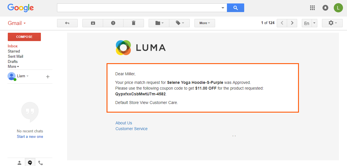 Price Match Requests in EmailOnce the request has been approved via the "sending a coupon" method, the customer will get the coupon code to be used once during the checkout process. This is how the email will look like: