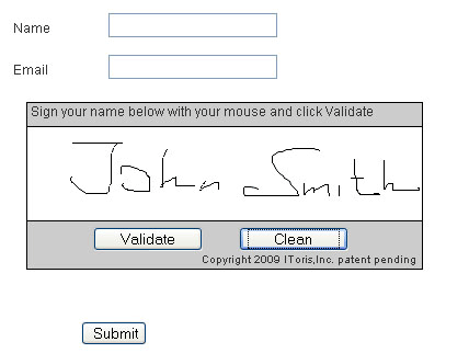 So your signature will be displayed as the box with area for signing and two buttons – Validate and Clear.